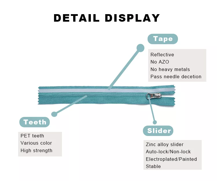Нейлоновая молния TRC со светоотражающей тканой полосой предназначена для повышения безопасности в ночное время и в условиях низкой освещенности. В нем используется высокопрочный основной материал и специально изготовленная светоотражающая лента, обеспечивающая заметное предупреждение на 360 градусов под любым углом света, надежно защищая безопасность пользователя.