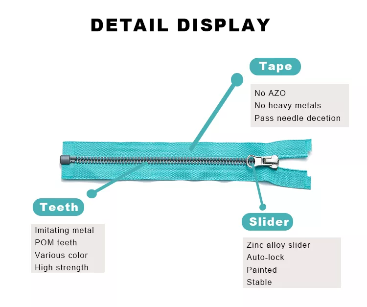 Кроме того, TRC создала комплексную комплексную систему контроля качества, гарантирующую, что каждая деталь, от постоянства окраски до точности профиля зуба, соответствует международным стандартам. Это делает этот продукт больше, чем просто молнию; это приверженность надежности и долговечности, обеспечивающая длительную поддержку таких высококачественных приложений, как одежда, багаж и обувь.